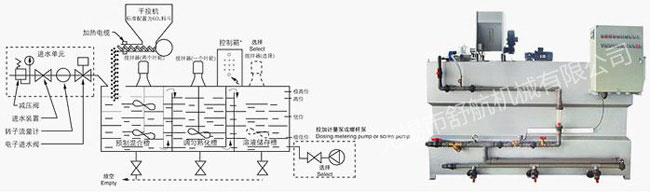 也有分批制備和投加功能的二槽式機型,或半自動制備系統(tǒng),簡易型溶液藥裝置。
