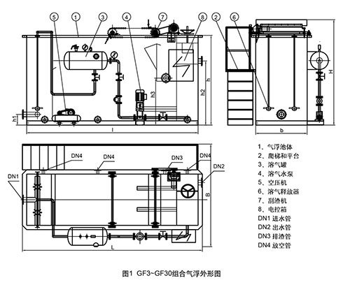 QF組合氣浮池由氣浮池體、溶氣系統(tǒng)、溶氣回流管路、溶氣水釋放裝置、刮渣裝置(根據(jù)用戶需要可以分別采用組合式、行車式和鏈板式)和電控柜等部件組成。氣浮分離技術(shù)是指空氣與水在一定的工作壓力下,使氣體大限度地融入水中,力求處于飽和狀態(tài),然后把形成的壓力溶氣水通過減壓釋放,產(chǎn)生大量的微細(xì)氣泡, 與水中的懸浮絮體充分接觸,使水中懸浮絮體粘附在微氣泡上,并隨氣泡一起浮到水面,形成浮渣并刮去浮渣,從而凈化水質(zhì)。
